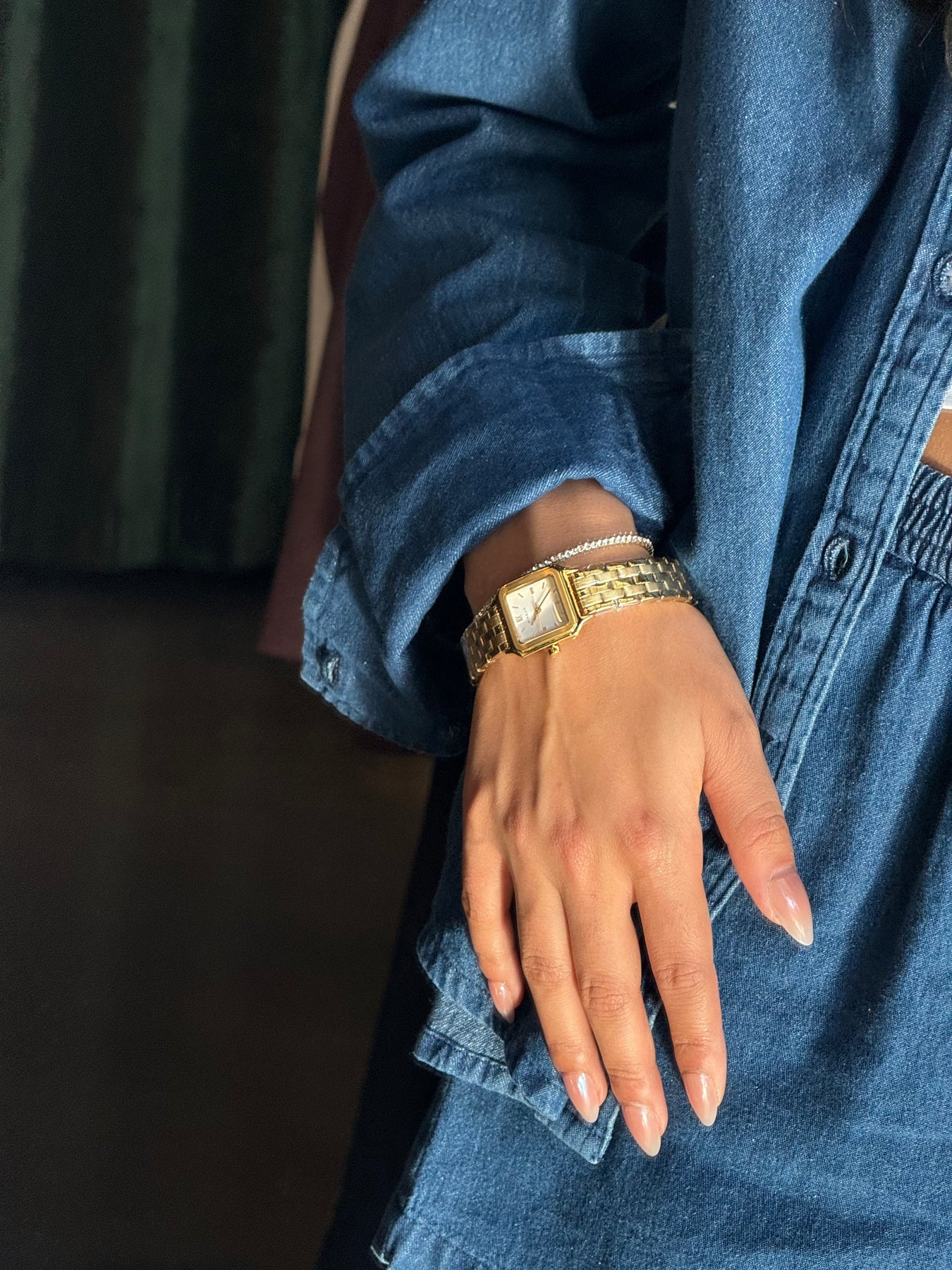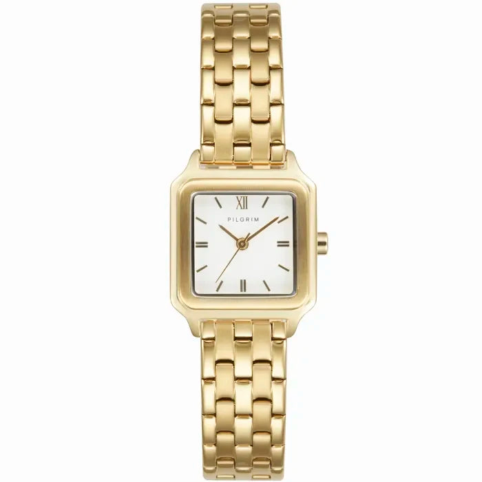 The Voyager Cider Gold Watch combines timeless elegance with refined minimalism. Its square gold case and bezel frame a clean dial, highlighted by slender hour markers and hands for a sophisticated look.