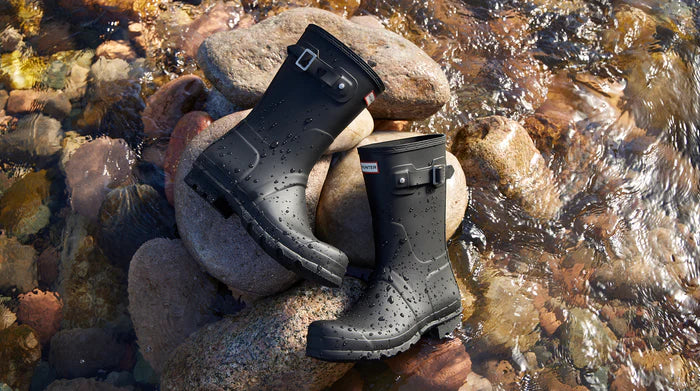 The Women's Original Short Rain Boot is a shorter version of the iconic Hunter Original Tall Boot and perfect for wet-weather conditions. Formed of natural rubber, each boot is handcrafted and assembled over three days before being vulcanized for superior protection.